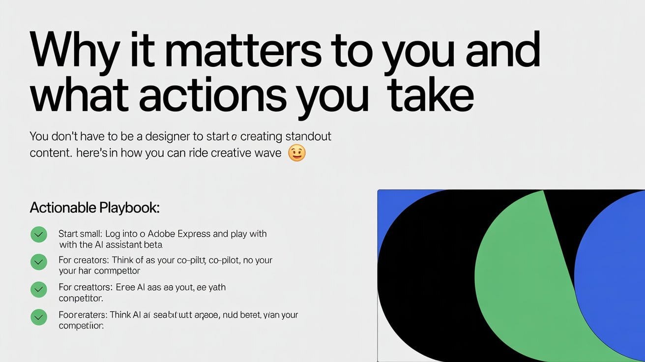 ✅ Start small: Log into Adobe Express and play with the AI Assistant beta — describe your next social post and see the magic unfold.